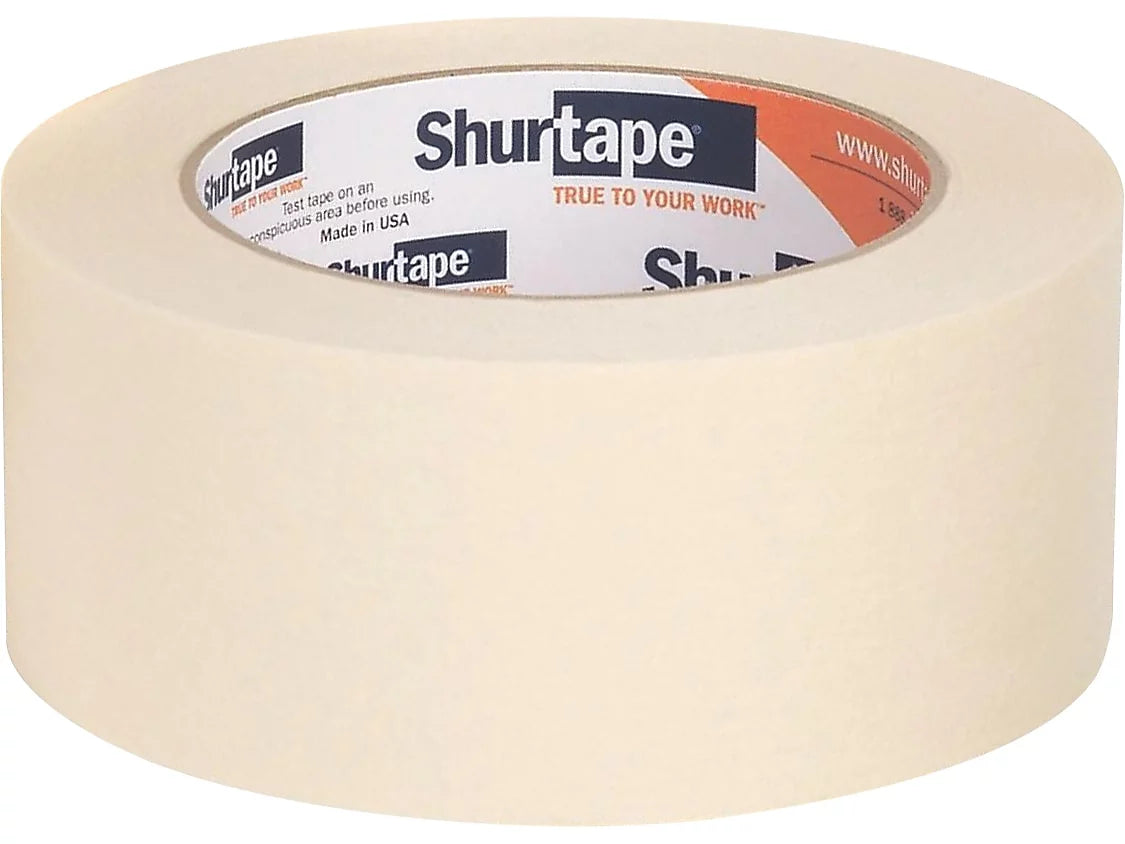 Ruban de masquage Shurtape. Adhère aux surfaces rondes ou irrégulières sans laisser de résidus une fois retiré.